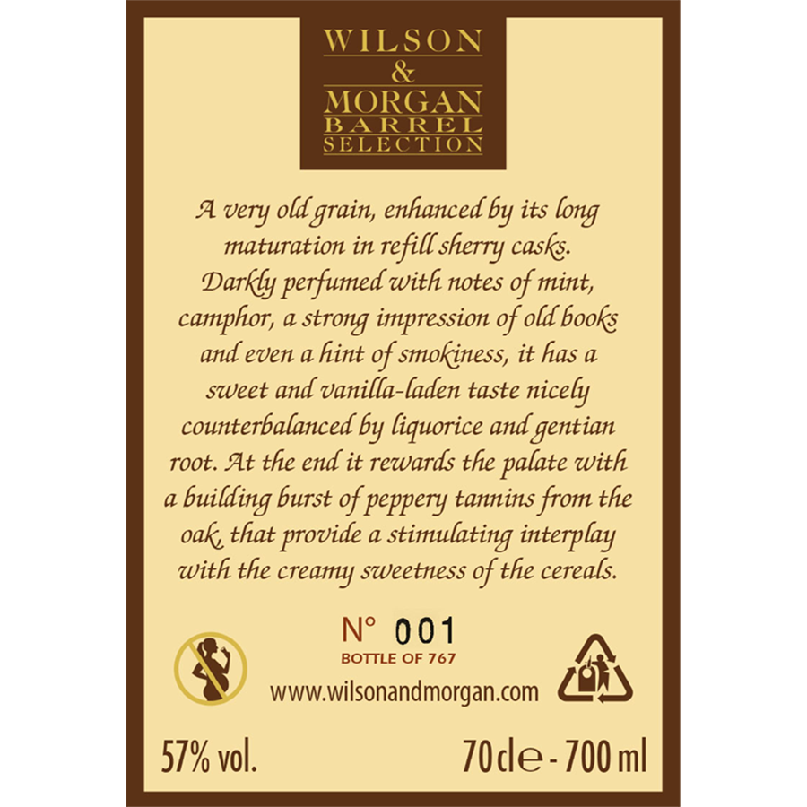 A very old grain whisky, enhanced by its long maturation in refill sherry casks. At the nose it’s darkly perfumed with notes of mint, camphor, a strong impression of old books and even a hint of smokiness. At the palate the sweetness of the cereals and the vanilla notes imparted by the long maturation are immediately evident, but soon the aromatic and slightly bitter notes of mint, liquorice, gentian root and old leather-bound books nicely complement it. Towards the finish, it’s an impressive crescendo of tannins from the oak: peppery and slightly astringent, but with the creamy cereal sweetness still lingering in the background to provide an intriguing tapestry.