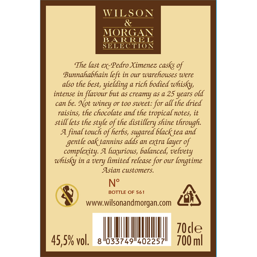 The last ex-Pedro Ximenez casks of Bunnahabhain left in our warehouses were also the best, yielding a rich bodied whisky, intense in flavour but as creamy as a 25 years old can be. Not winey or too sweet: for all the dried raisins, the chocolate and the tropical notes, it still lets the style of the distillery shine through. A final touch of herbs, sugared black tea and gentle oak tannins adds an extra layer of complexity. A luxurious, balanced, velvety whisky in a very limited release for our longtime Asian customers.